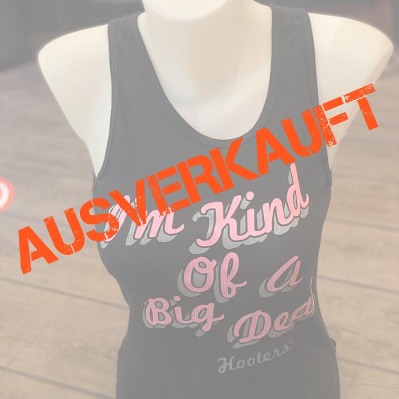 Top in Schwarz mit Aufschrift „I’m Kind of a Big Deal“, darunter „Hooters“.